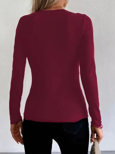 • Kadın uzun kollu yakadan halka detaylı viskon bluz