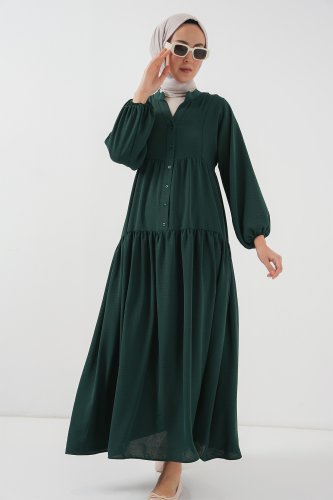 • 2527 Uzun Tesettür Elbise A Zümrüt Yeşili