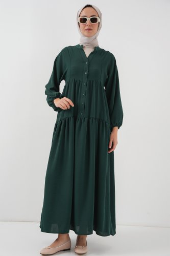 2527 Uzun Tesettür Elbise A Zümrüt Yeşili